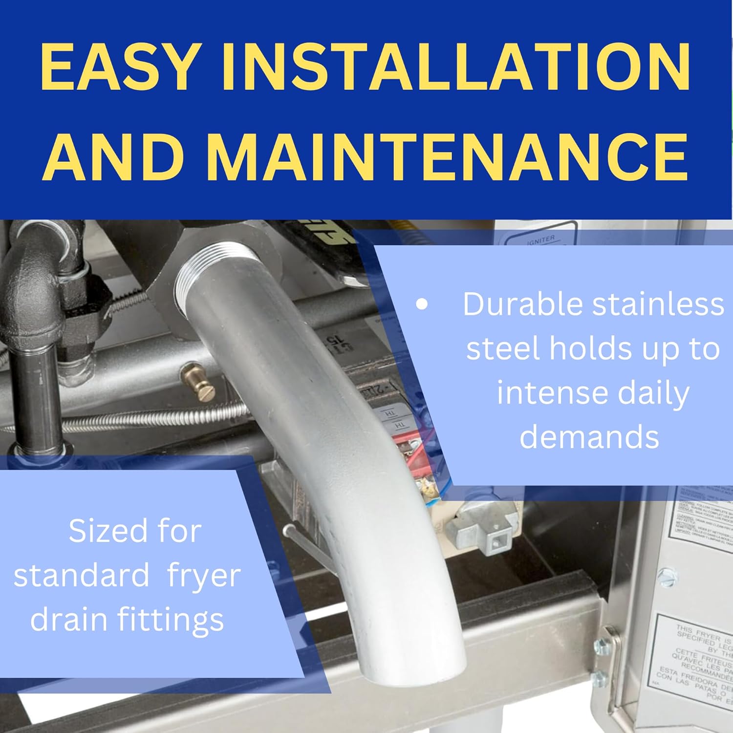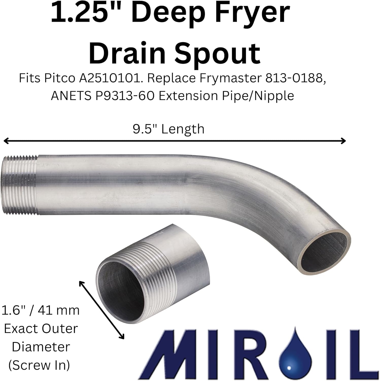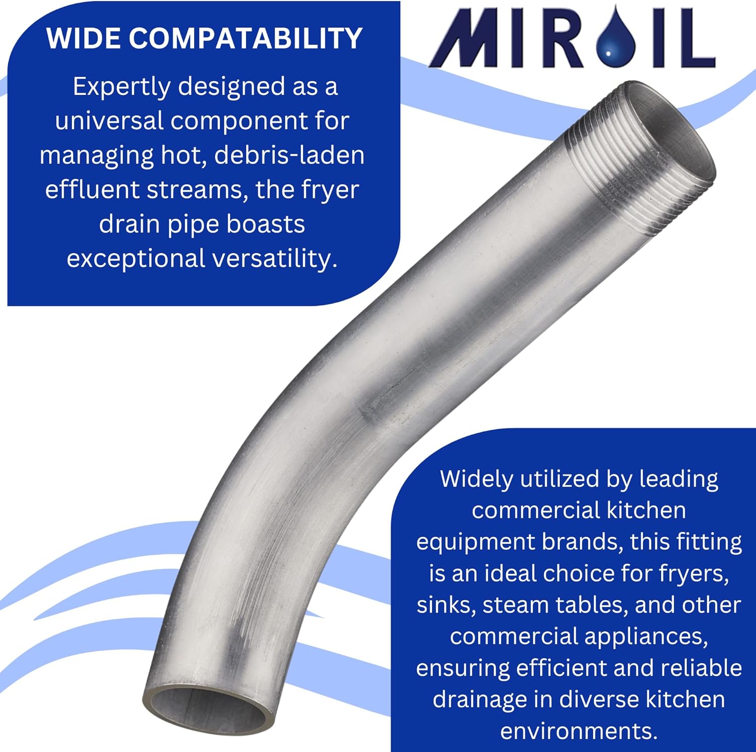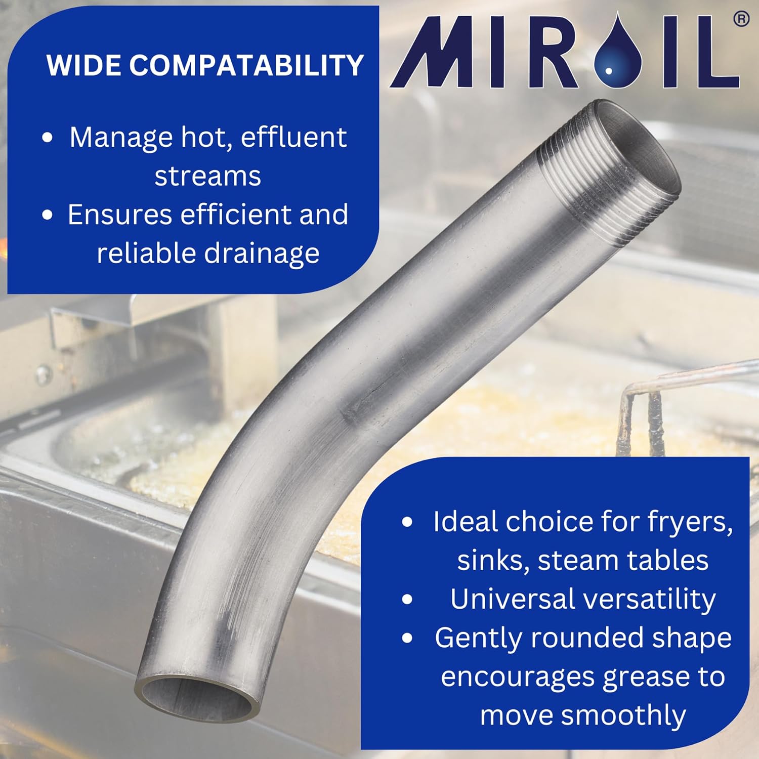 Oil Fryer Drain Spout Inner Diameter 1.25″ (1.5″ Outer) x 9.5” Deep Fryer Curve Out Drain Pipe Fitting, Extension Pipe Nipple for Deep Fryers, Sink, Spout Tube for Kitchen & Restaurant by MirOil 90295