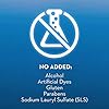 No added: alcohol, artificial dyes, parabens, gluten, sodium lauryl Sulfate (SLS)