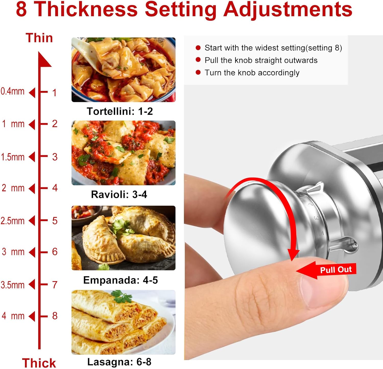 🍝【8 – position Adjustable Knob on this Pasta Roller Attachment】Whether you make delicate ravioli skins or thick fettuccine, the 8 – speed adjustable knob allows for precise control. It’s so easy to use, just a simple turn of the knob and you can get the perfect thickness for whatever pasta dish you are creating. This pasta roller attachment for KitchenAid Stand Mixer gives you so much control over the texture of your pasta, making every batch turn out just the way you want it.