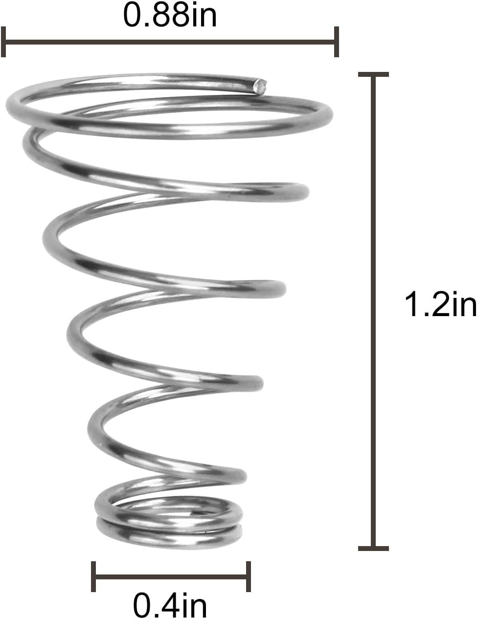 Spring size: 0.4″ diameter small end Inner ring, 0.8″ diameter big end and approximately 1.25″ high