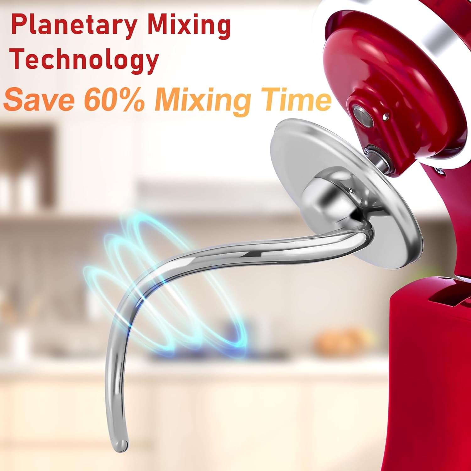 UNIQUE SPIRAL DESIGN and EASY INSTALLATION: Spiral dough hook for kitchenaid stand mixer offers superior gripping and mixing capabilities compared to traditional C-shaped hooks. utilizing the principle of leverage to enhance the mixing of dough, reducing mixing time by 55%, more energy efficient, and reducing household expenses. Tough doughs are mixed effortlessly and thoroughly. The kitchen aid bread hook features user-friendly slots for quick installation, is easy to clean and replace, and avoids contact with bowls, ensuring perfect baking.