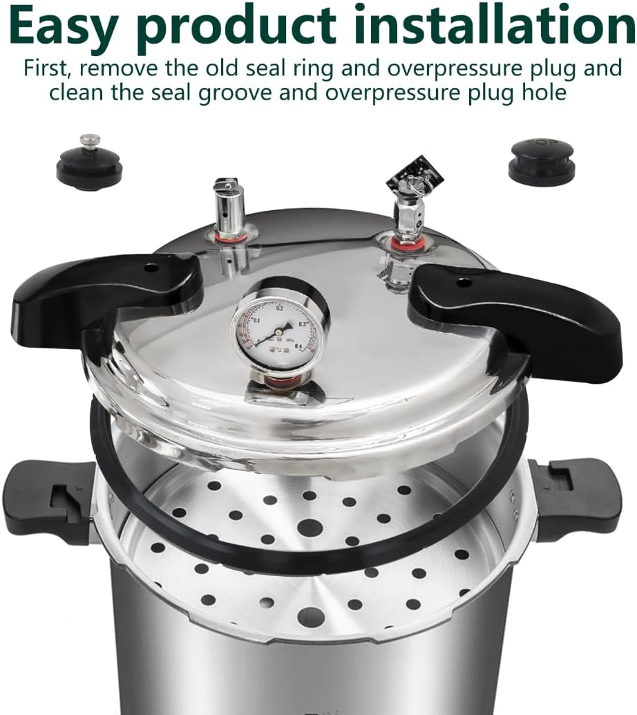 Package Included: 1 SET(1 PRESSURE CANNER SEALING RING,1 OVERPRESSURE PLUG,1 AUTOMATIC AIR VENT)