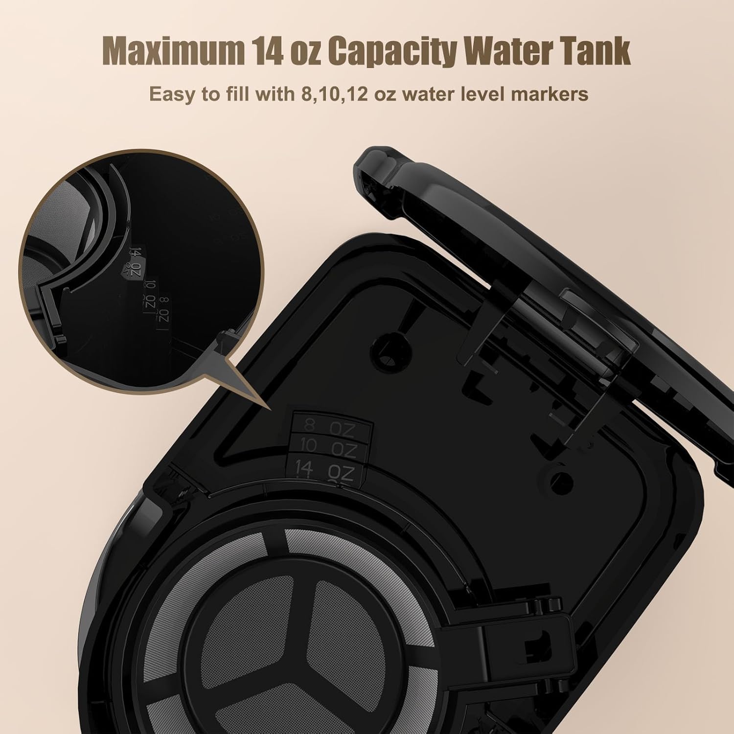 Precision Brewing with Clear Water Level Markings – The water reservoir features clear markings for 8oz, 10oz, and 14oz, ensuring you get the exact amount of coffee you desire every time. Whether you need a quick shot or a larger mug, this thoughtful design makes it easy to customize your brew size and strength. Enjoy consistent, delicious results with each pour.