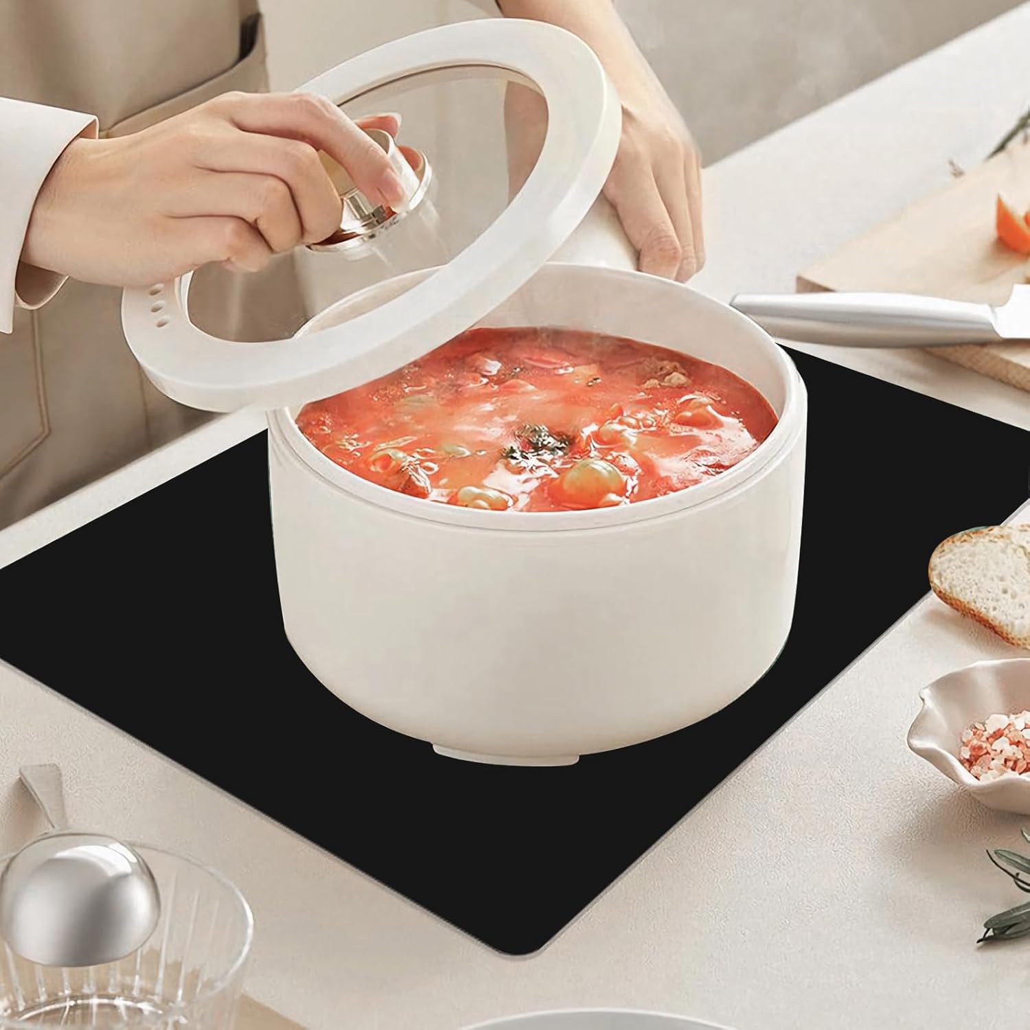 The silicone mat has good anti-slip properties and can be firmly fixed on the countertop without sliding or moving, providing you with a safer cooking and food preparation environment.