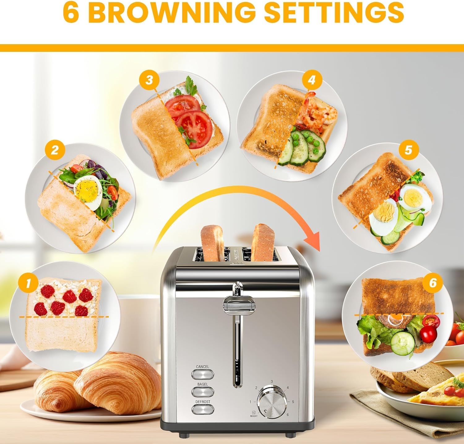 Upgraded design: Our toaster has upgraded the basic functions and has 6 shade settings, so you can take control of your toasting level and enjoy your toast exactly how you like it