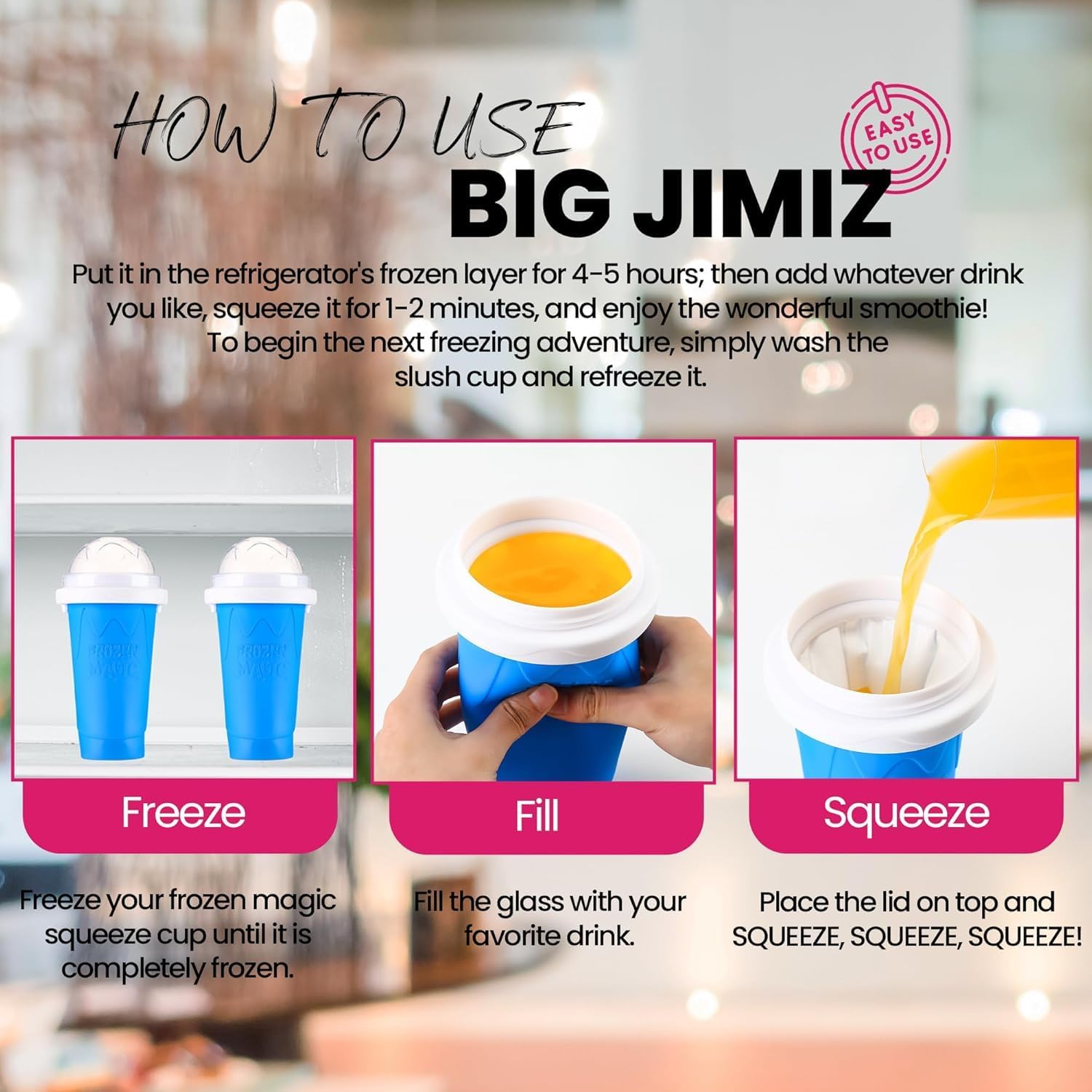 【Quick-Freezing Magic Slushie Cup】 – Turn your favorite drinks into icy treats in just minutes! This slushie cup features built-in freezing liquid that rapidly chills beverages like soda, juice, or milk into a refreshing slush without diluting the original flavor. No need for ice or blenders—just freeze, pour, and squeeze for a quick, delicious treat that’s safe, clean, and fun to make.