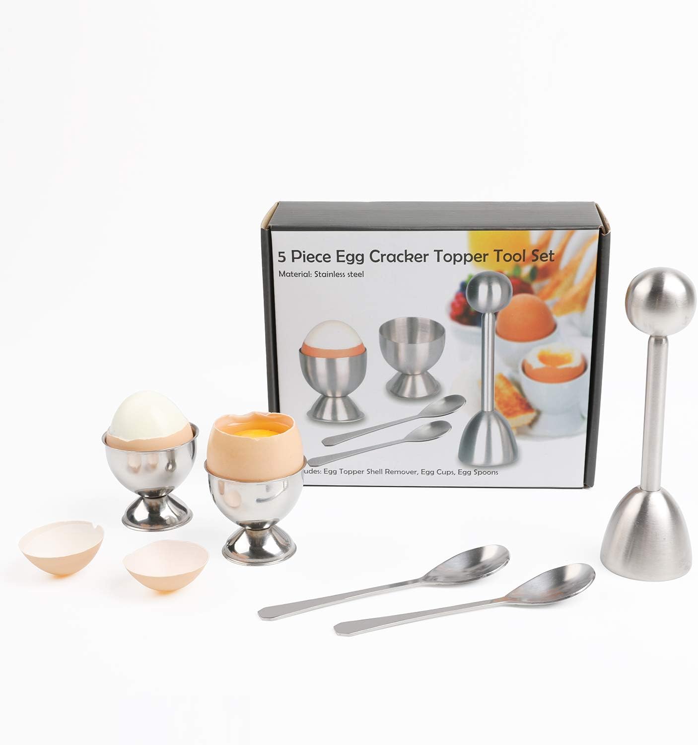 Soft Hard Boiled Egg Cutter Topper Set Egg Cracker with Include 2 Cup 2 Spoon 1 Topper Cutter Shell Separator Remover Stainless Steel Kitchen Tool