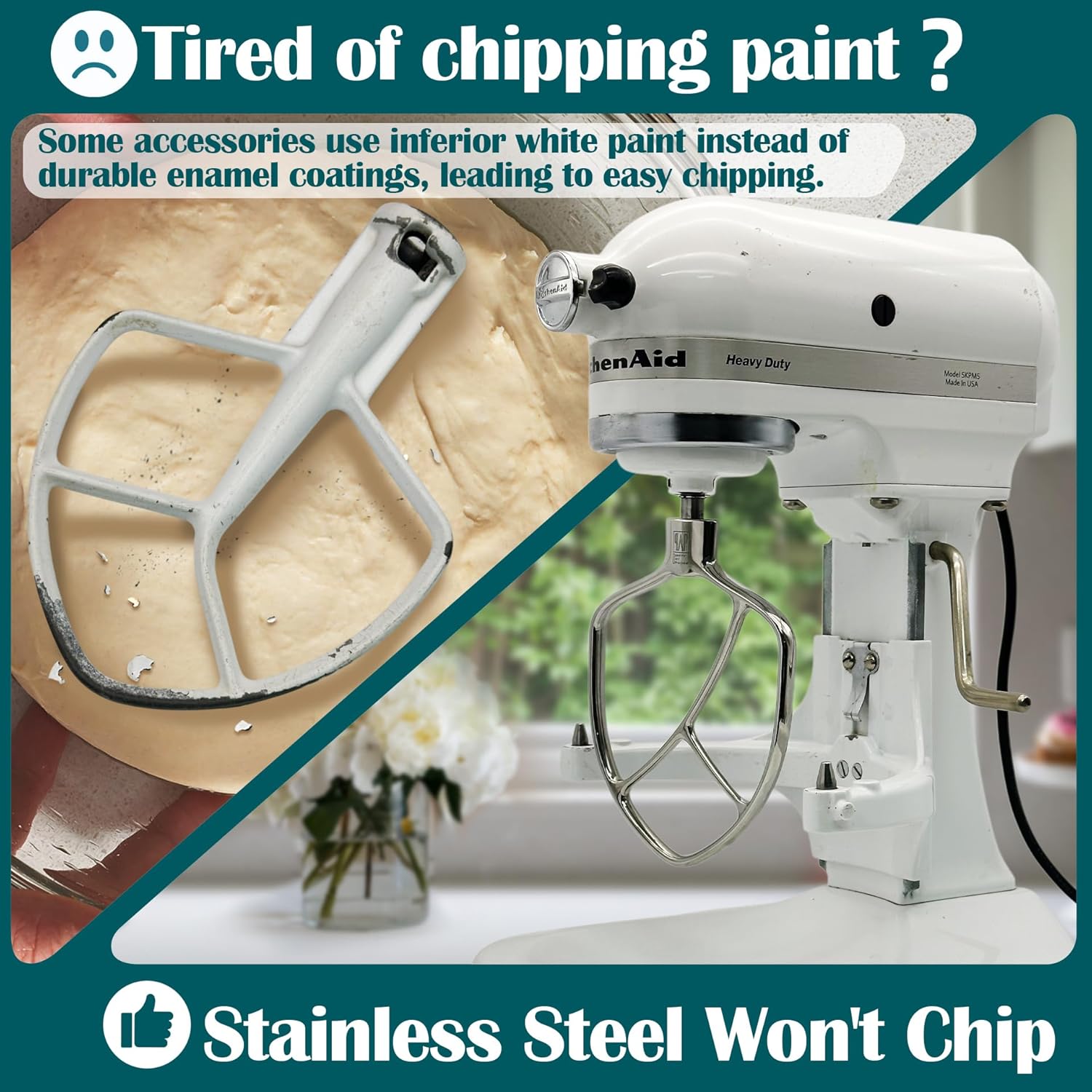 Stainless Steel Flat Beater – Compatible with KitchenAid 4.5-5qt Bowl-Lift Mixer, Fits Heavy Duty, Professiona HD, Pro 450, Pro 500, Limited Edition, ProLine Series, K5A, K4SS, K5SS, KSM5, KSM50