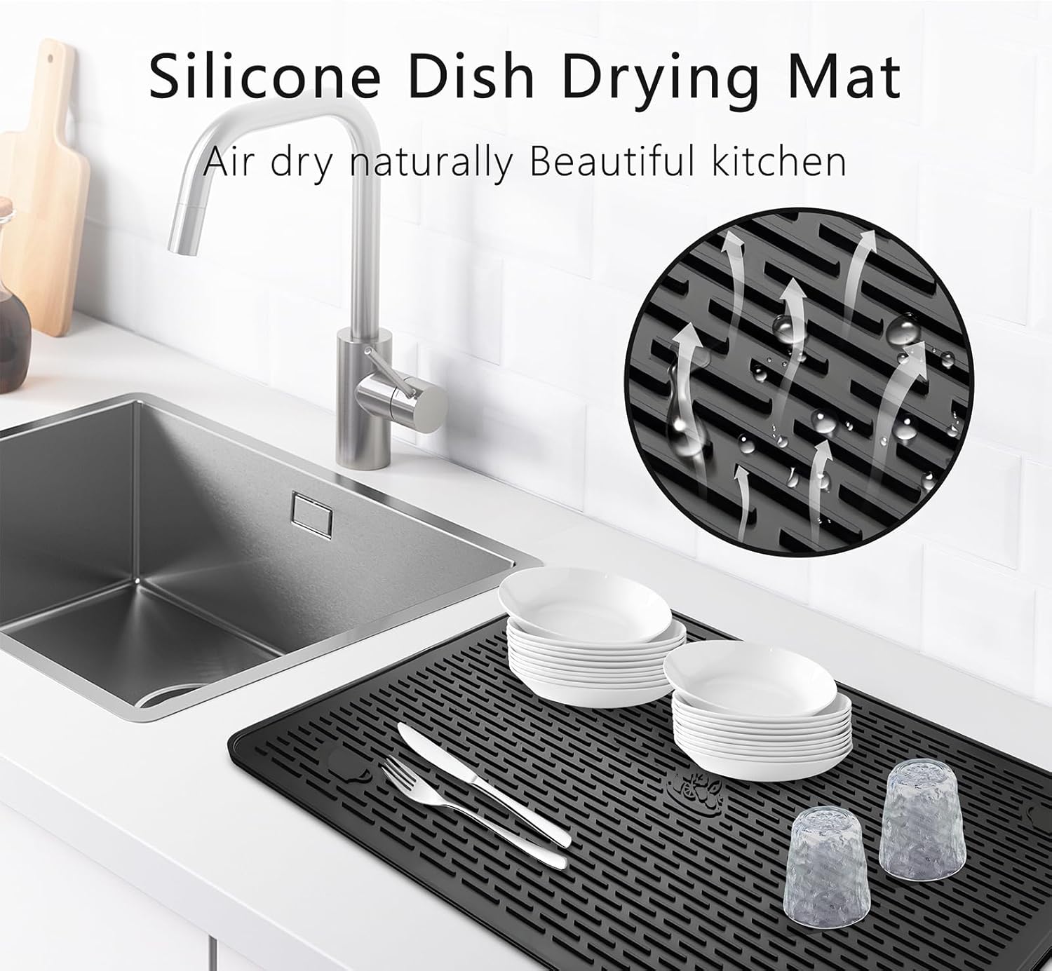 【Silicone Dish Drying Mat】The electric stove top cover is designed with wide convex ridges to increase air circulation and effectively capture dripping water from kitchen utensils, cups, fruits and vegetables. Its high edge and waterproof features keep countertops dry and clean, making it an ideal kitchen drying mat.