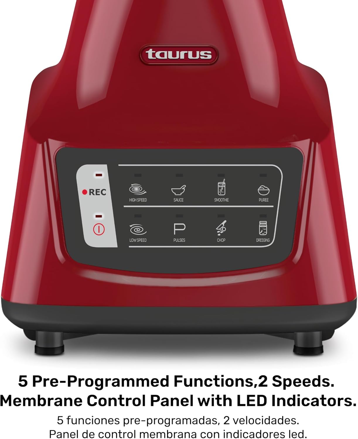 POWERFUL PERFORMANCE: The Taurus GRANDEUR TOUCH REC Blender features 800W of peak power, perfect for quickly blending and crushing a wide range of ingredients, from fruits and vegetables to ice and nuts with ease.