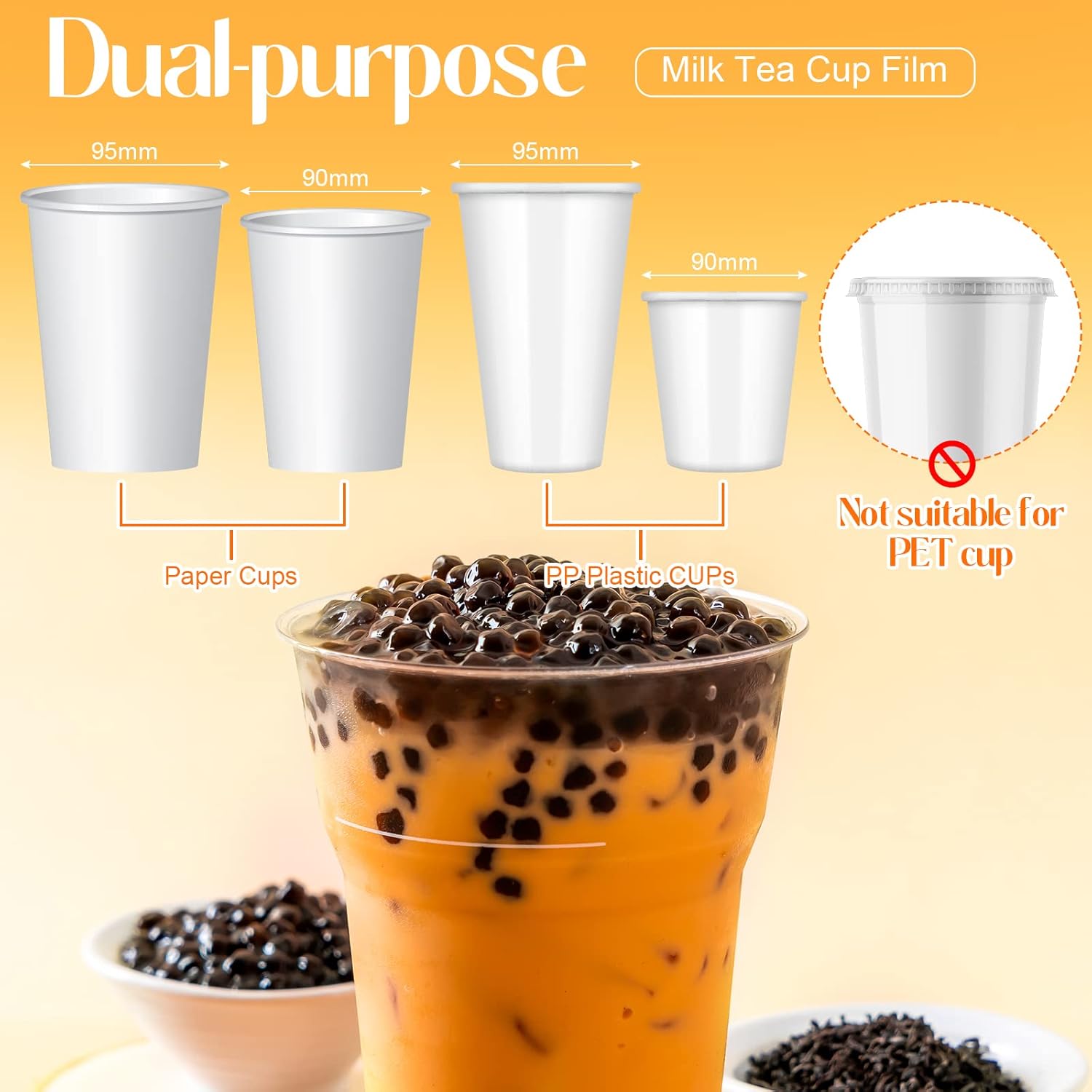Suitable Size: this bubble tea sealer film is about 170 mm in diameter, film width about 130 mm, suitable for PP cup with a diameter of 90-105 mm, mainly suitable for manual, semi automatic, and automatic cup sealing machine; Please check the size before ordering