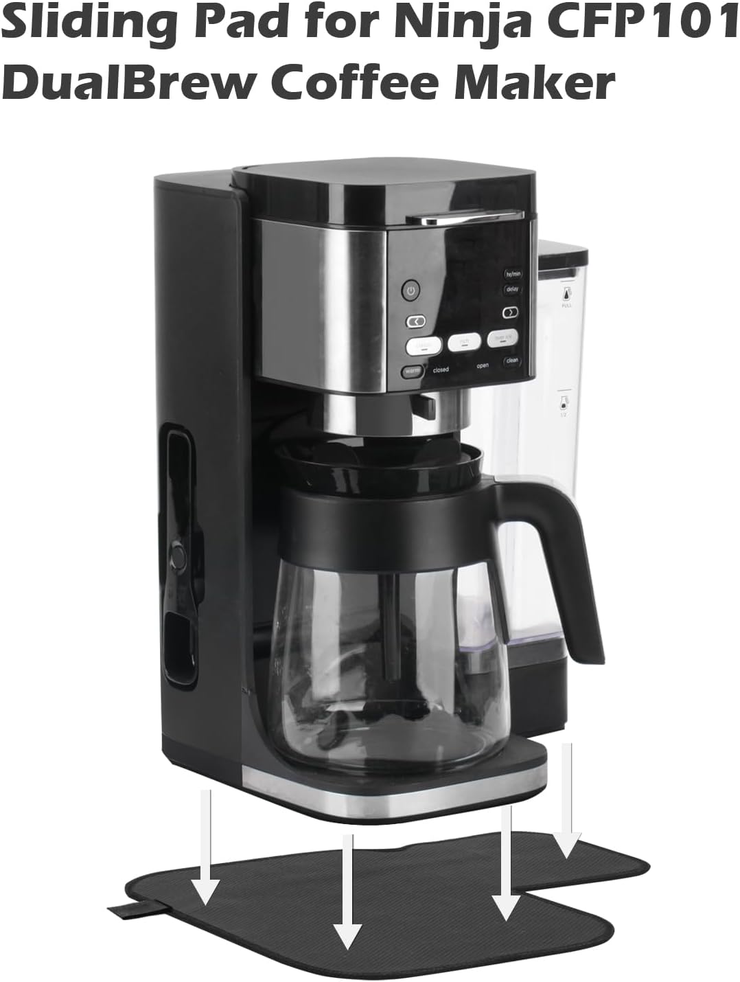 This sliding mat is specially designed for the for Ninja CFP101 DualBrew Coffee Maker. It combines a dual-layer construction—a non-slip base to firmly grip your coffee machine, and a smooth gliding surface that allows effortless movement across your kitchen countertop. No more awkward lifting—just slide to reposition for brewing, cleaning, or storage. it fits perfectly under the base of the for Ninja DualBrew. The included hanging strap offers convenient vertical storage. Protect your countertop and enjoy seamless convenience in one sleek accessory.
