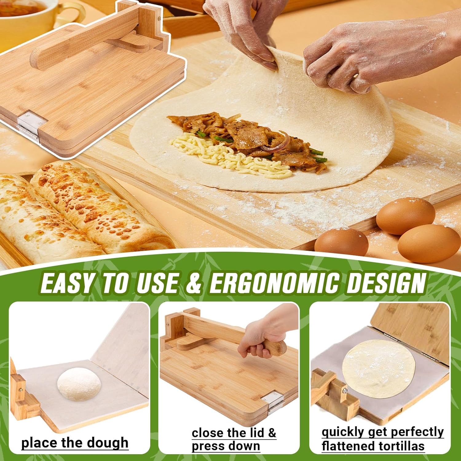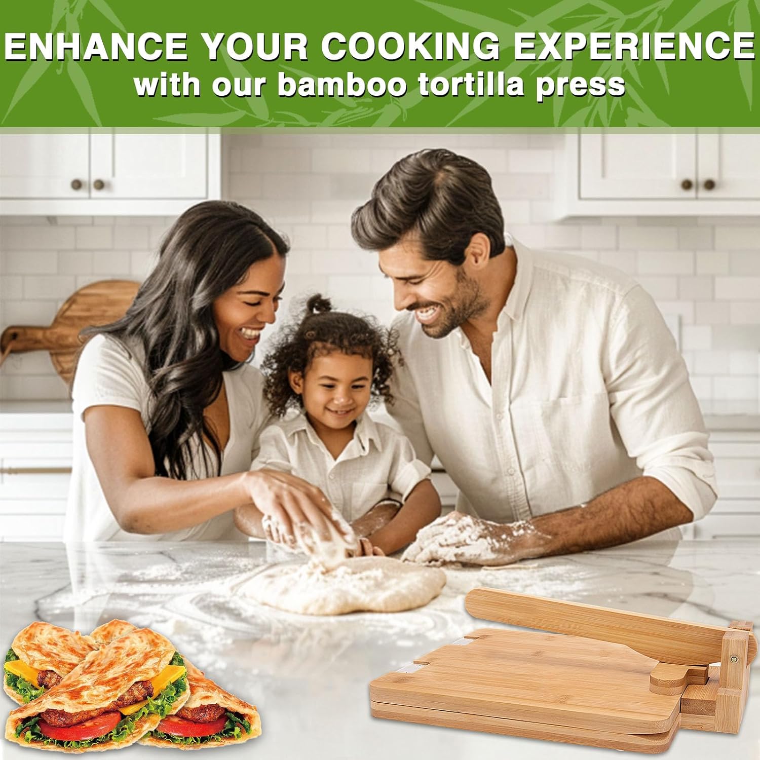 ●High-Quality Bamboo Construction: Made from high-quality bamboo material, our tortilla press is built to last and offers a natural, rustic aesthetic that complements any kitchen decor.