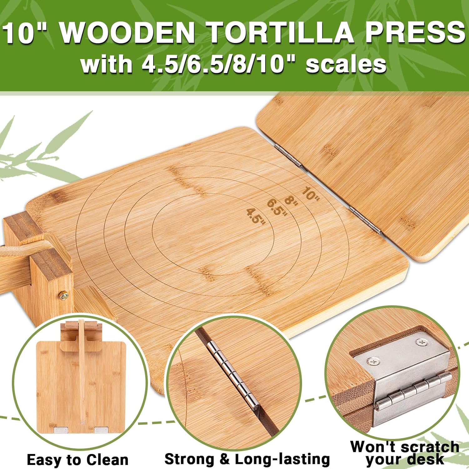 ● 10 Inch Wooden Tortilla Press: Allowing you to easily make larger tortillas such as quesadillas, burritos, enchiladas, and more.