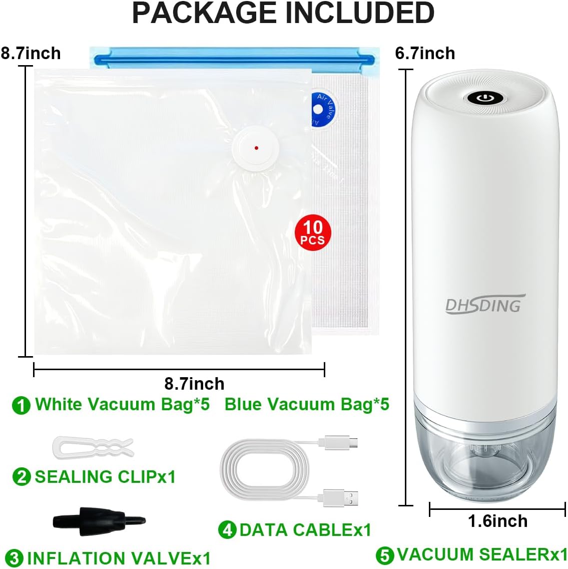 Vacuum Sealer – Handheld Vacuum Sealer Machine for Food, Portable Food Storage with 10 Seal Bags, Sous Vide Friendly